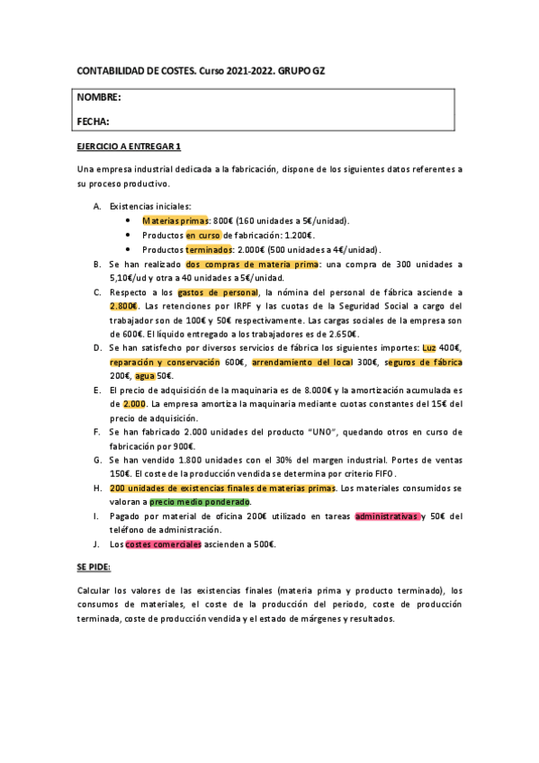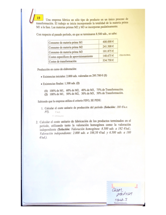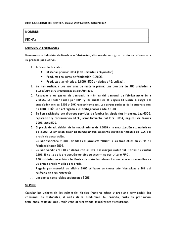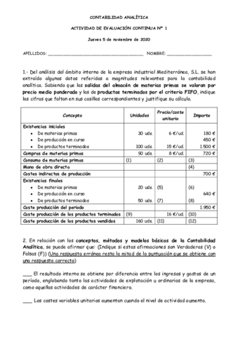 He publicado nuevos apuntes de 2º Contabilidad de Costes: Practica 1 Evaluación Continua