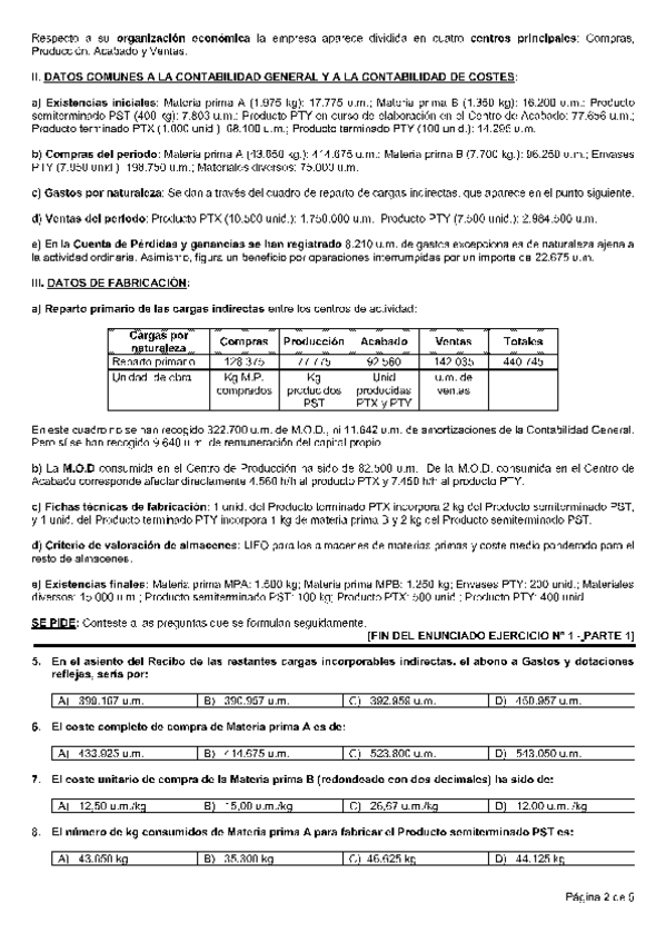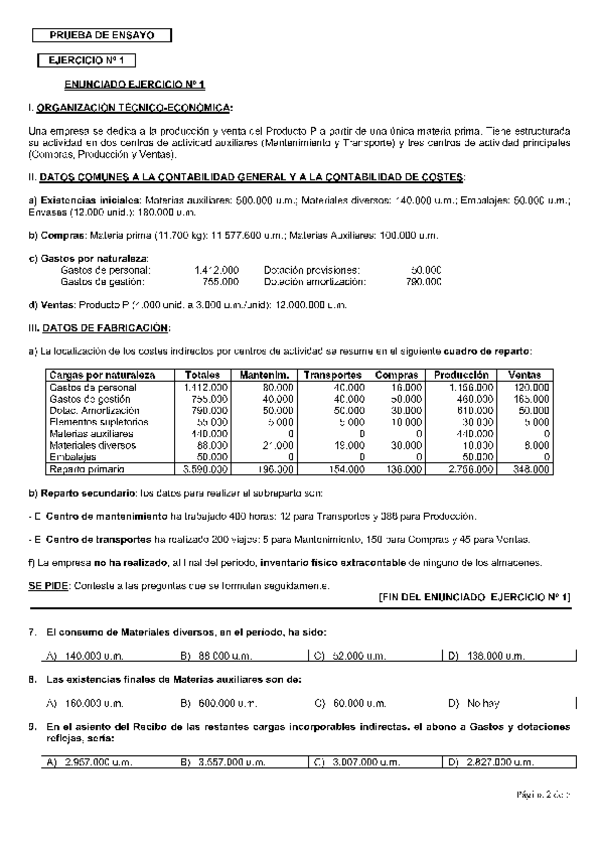 Examen contabilidad de costes