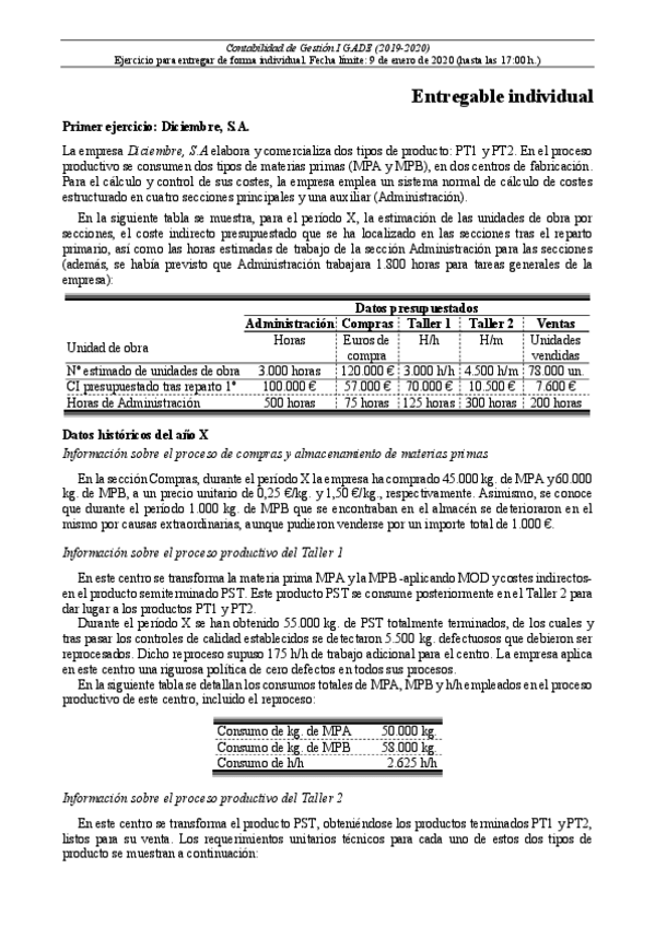He publicado nuevos apuntes de 3º Contabilidad de Gestión I: Entregable indiv DICIEMBRE SA 2019-2020