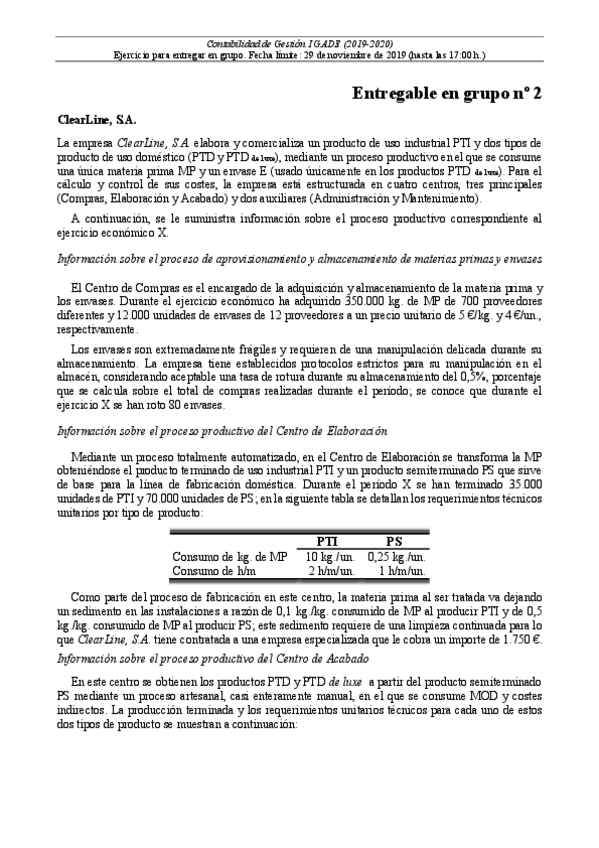 He publicado nuevos apuntes de 3º Contabilidad de Gestión I: Entregable nº2 ClearLine 2019-2020