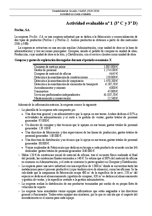 He publicado nuevos apuntes de 3º Contabilidad de Gestión I: Actividad evaluable nº1 ProSur