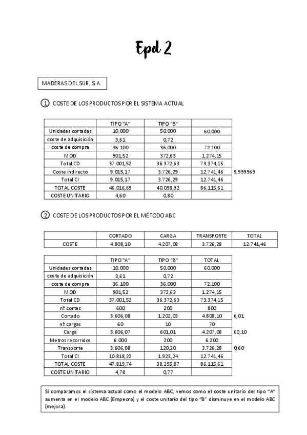 He publicado nuevos ejercicios de 3º Contabilidad de Gestión Ii: Planificación y Contro: epd-2-maderas-del-sur.pdf