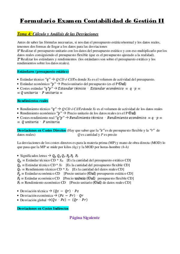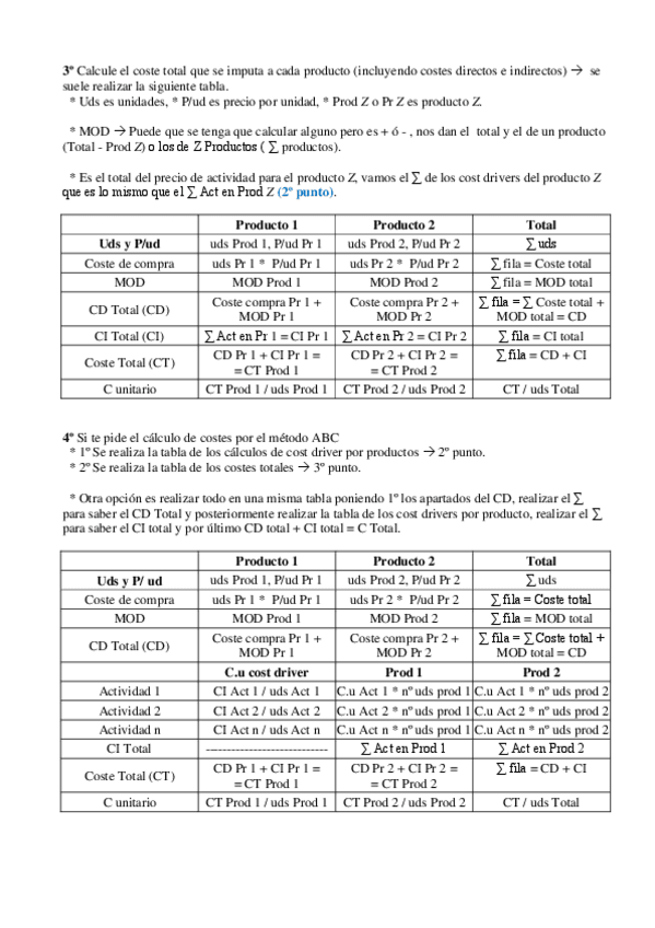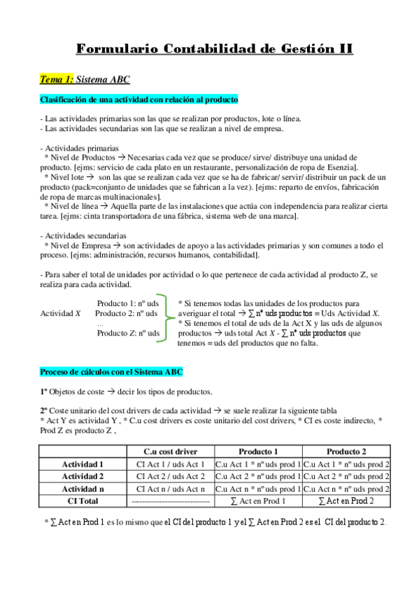 He publicado nuevos apuntes de 4º Contabilidad de Gestión II: Planificación y Control: Formulario Examen Costes II.pdf