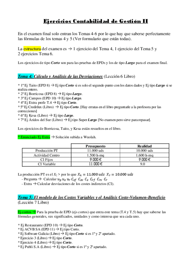 He publicado nuevos practicas de 4º Contabilidad de Gestión II: Planificación y Control: EPDS