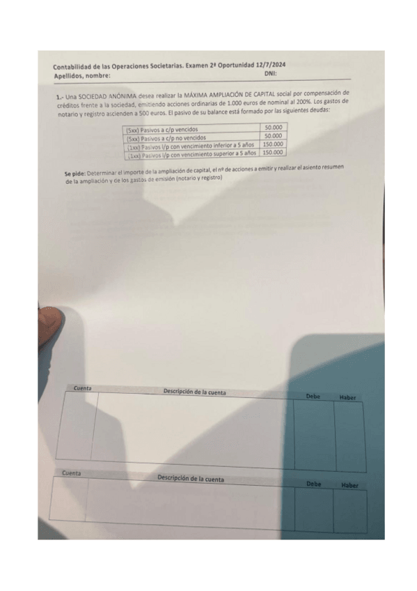 Ejercicios y exámenes contabilidad de operaciones societarias