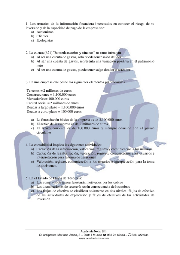 He publicado nuevos examenes de 1º Contabilidad Financiera I: preguntas-test-conta.pdf