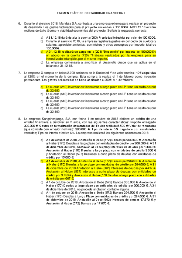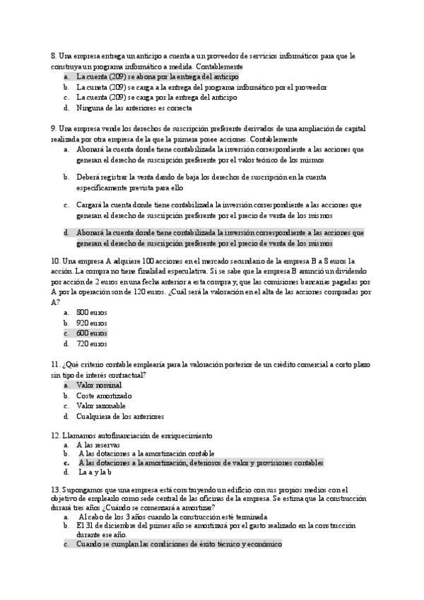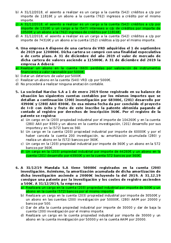 test de contabilidad Financiera II resuelto