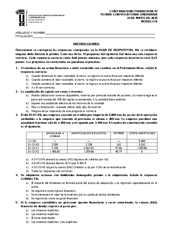 He publicado nuevos examenes de 2º Contabilidad Financiera III: Examen ordinaria 2024-2025
