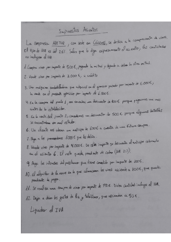 SUPUESTOS SOBRE LAS CUENTAS