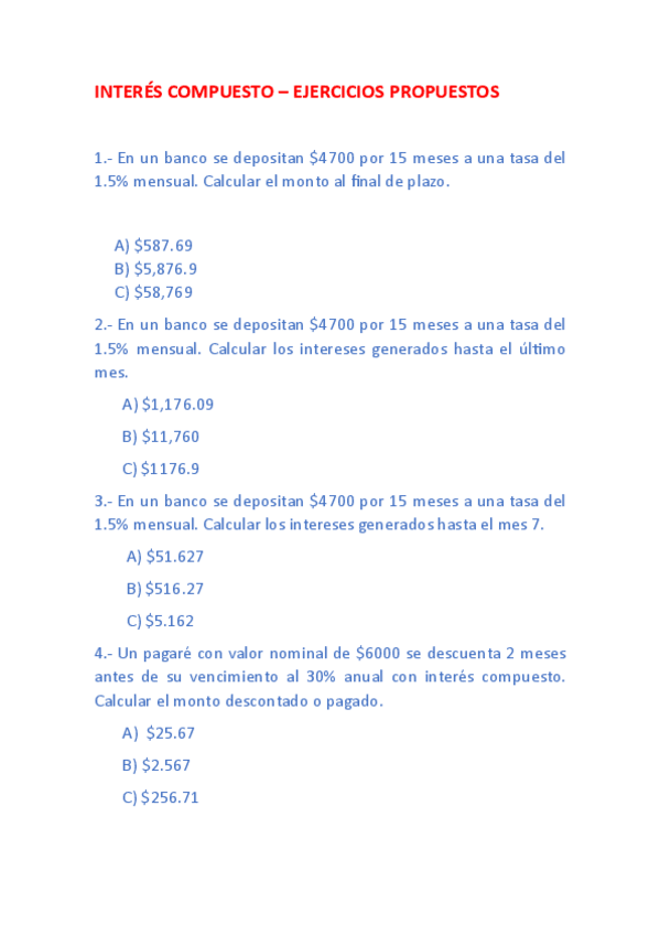 He publicado nuevos ejercicios de 1º Contabilidad general y de costos: INTERES-COMPUESTO-Ejercicios.pdf