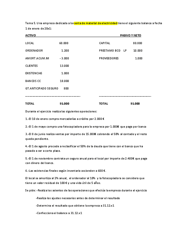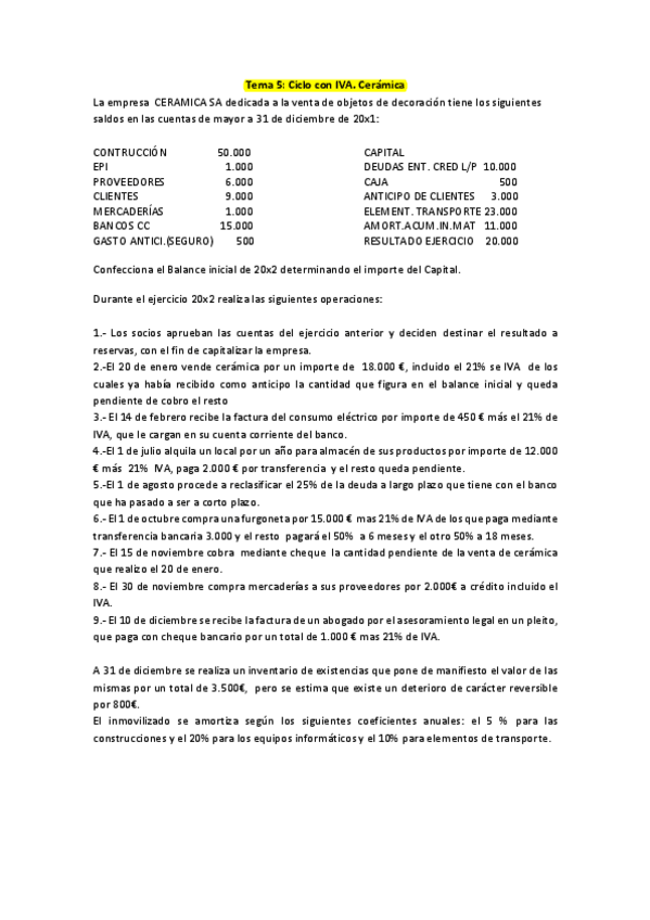 SUPUESTOS EL CICLO CONTABLE tema 5