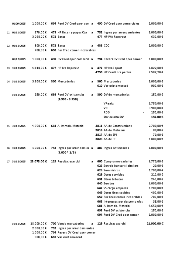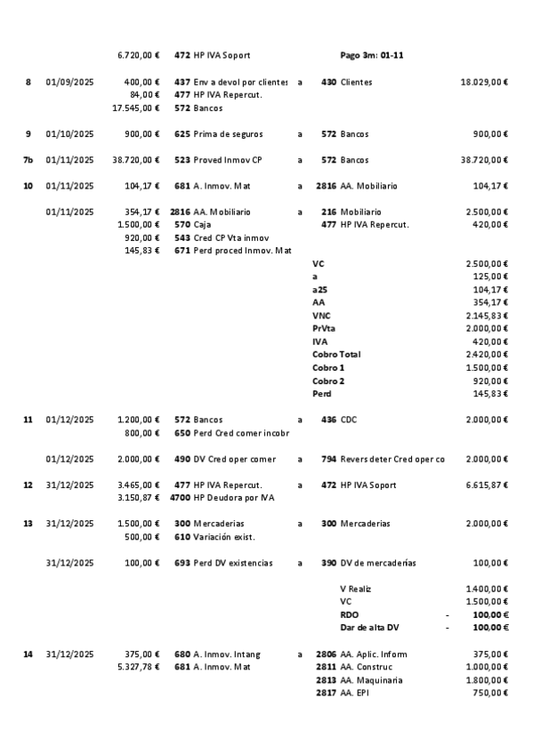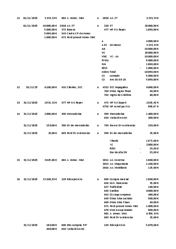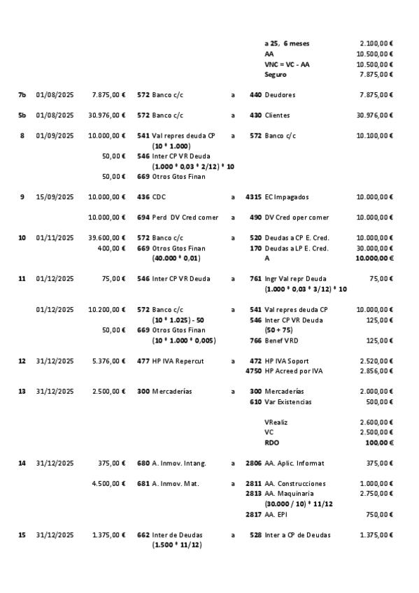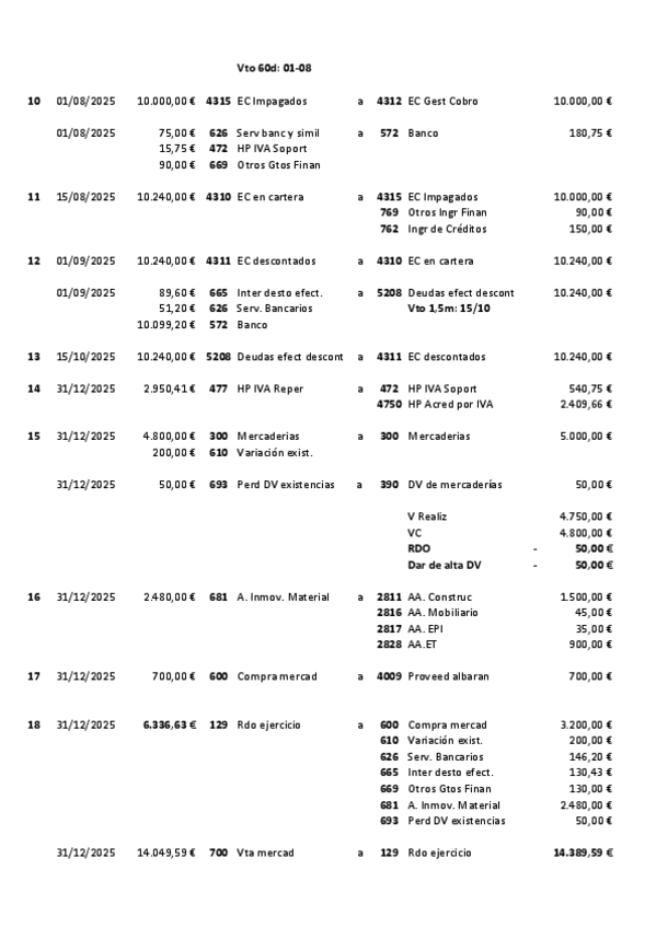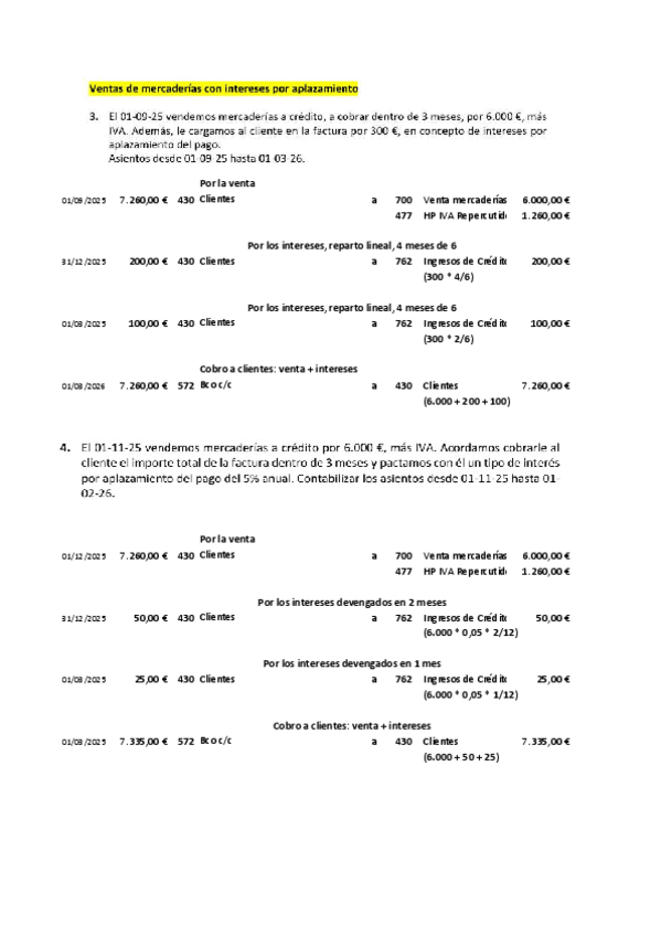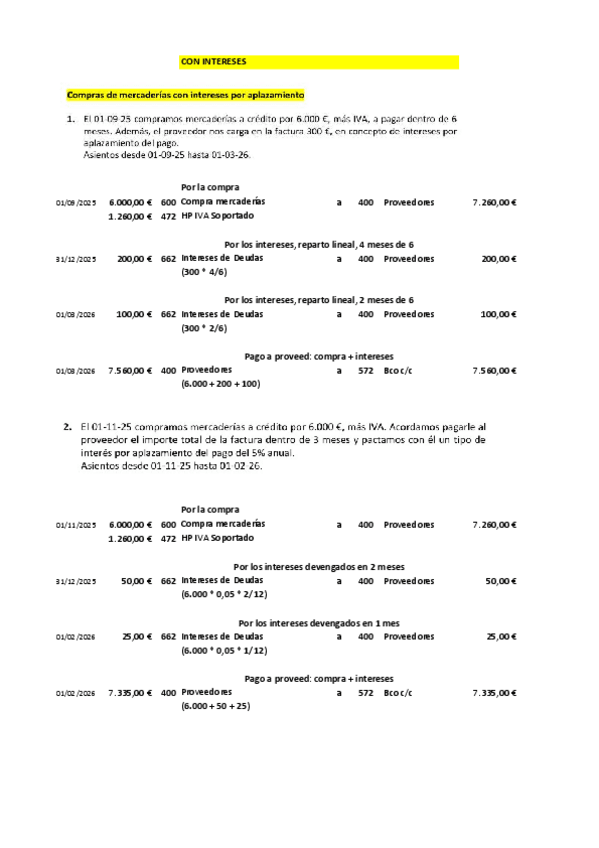 Contabilidad 2º Grado Superior Administración y finanzas Actividades con Solución de COMPRAVENTA de MERCADERÍAS con INTERESES