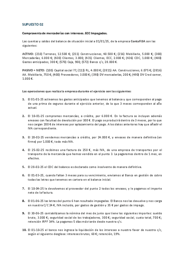 Contabilidad 2º Grado Superior Administración y finanzas Supuesto 02 Compraventa de mercaderías con intereses. ECC Impagados.