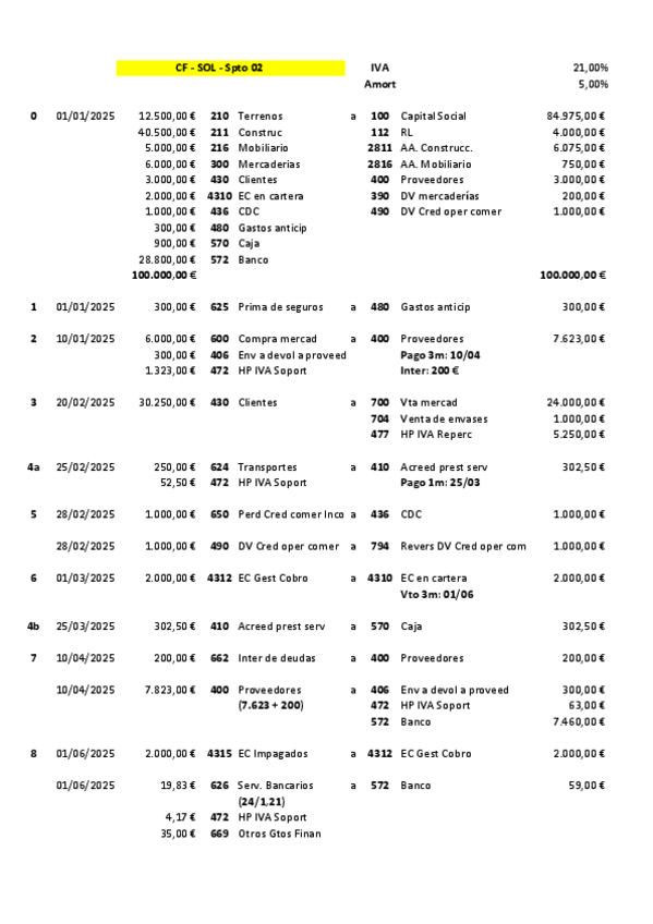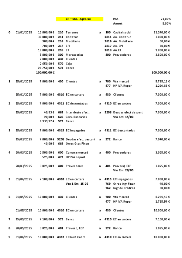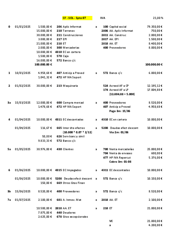 Contabilidad 2º Grado Superior Administración y finanzas Supuesto 7 Solución Compra mercaderías con intereses. ECC descontados Impagados. Préstamo. Leasing. Siniestro.