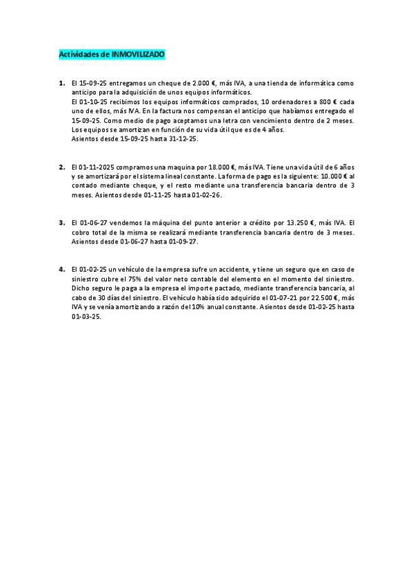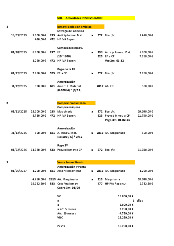 Contabilidad 2º Grado Superior Administración y finanzas Actividades con Solución de INMOVILIZADO