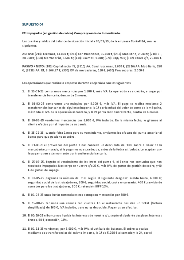 Contabilidad 2º Grado Superior Administración y finanzas Supuesto 04 EC Impagados (en gestión de cobro). Compra y venta de Inmovilizado.