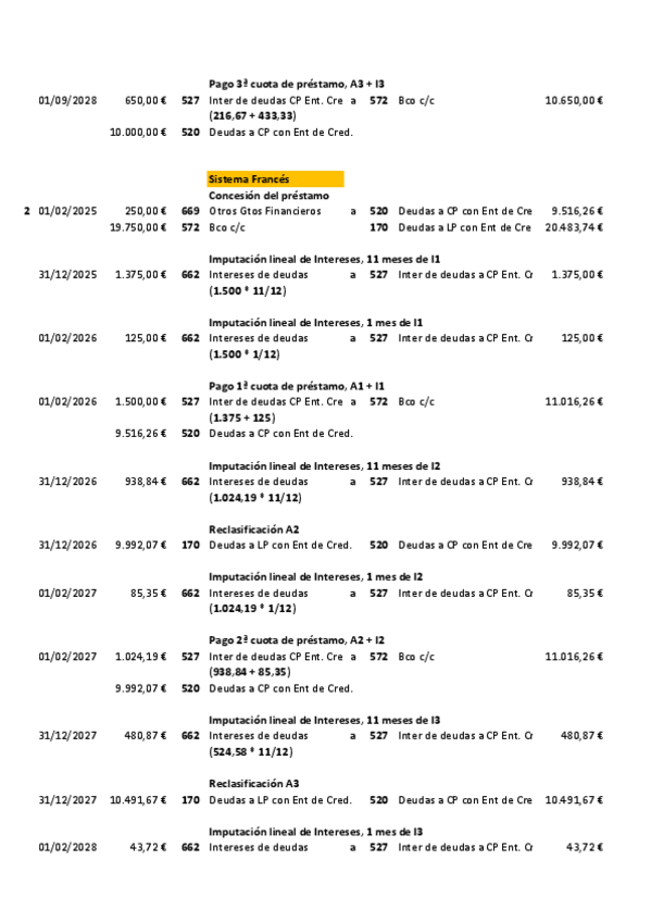 Contabilidad 2º Grado Superior Administración y finanzas Actividades de PRÉSTAMOS 04