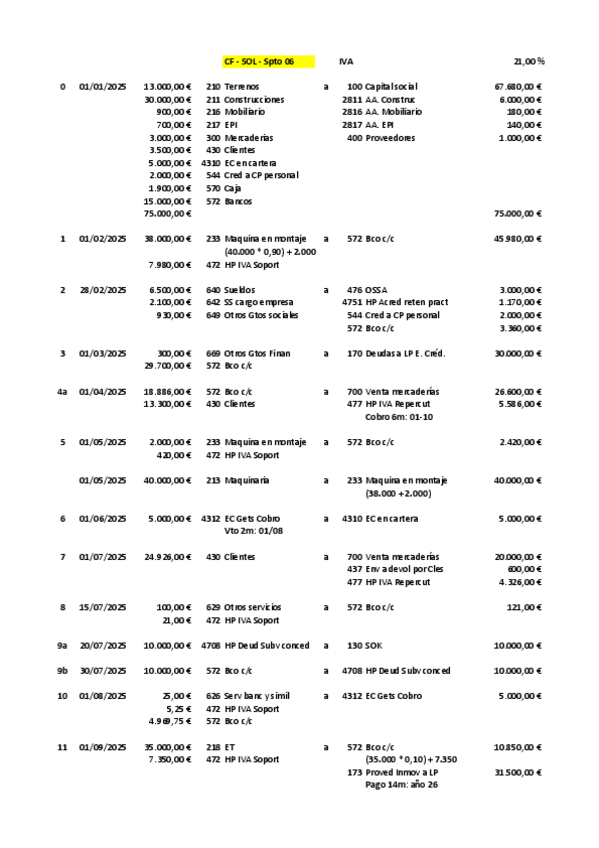 Contabilidad 2º Grado Superior Administración y finanzas Supuesto 06 Solución Venta mercaderías con intereses. Préstamo. Subvención para compra de Inmovilizado.