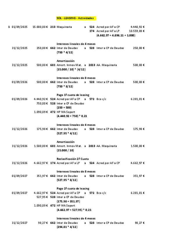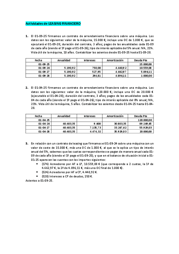 Contabilidad 2º Grado Superior Administración y finanzas Actividades de LEASING FINANCIERO 05