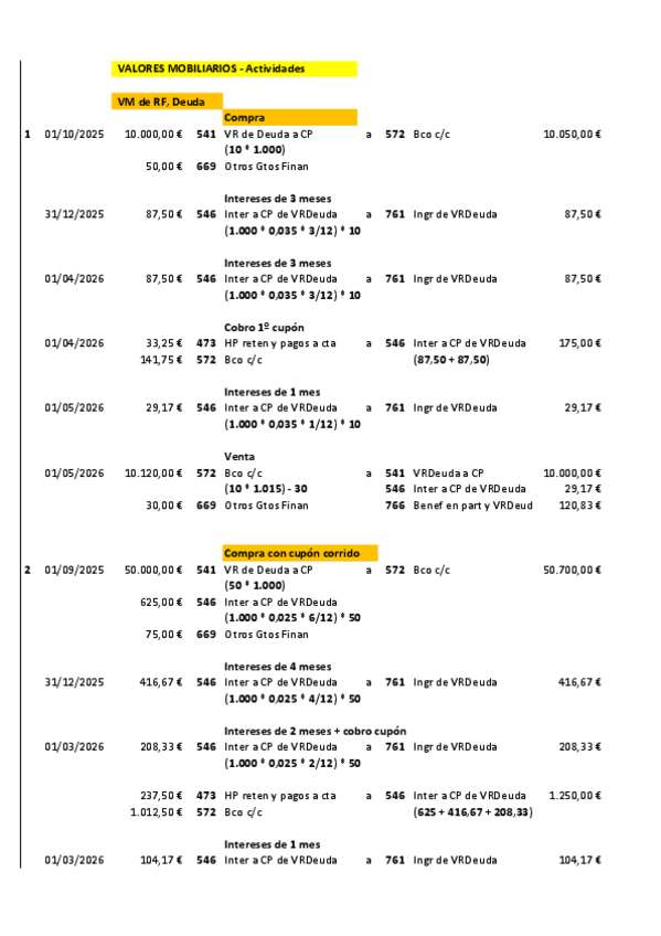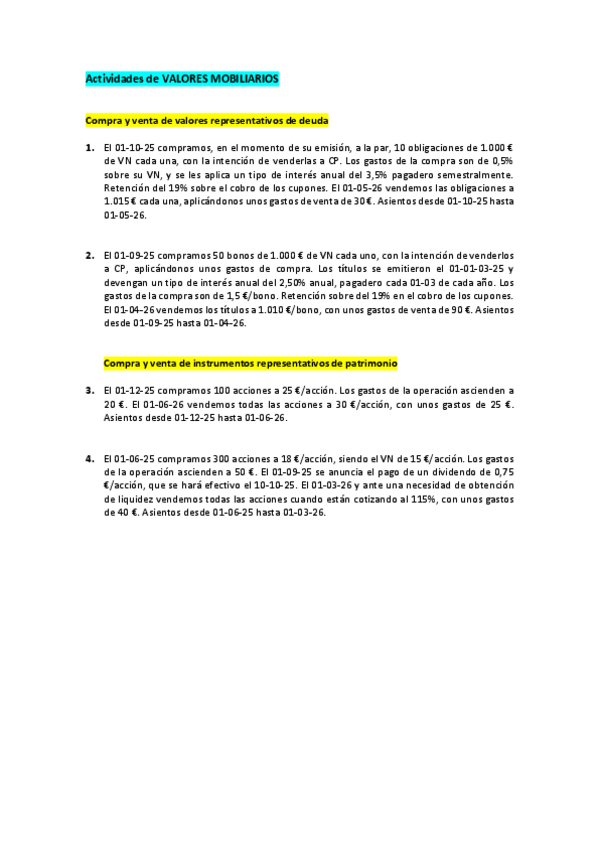 Contabilidad 2º Grado Superior Administración y finanzas Actividades de VALORES MOBILIARIOS 07