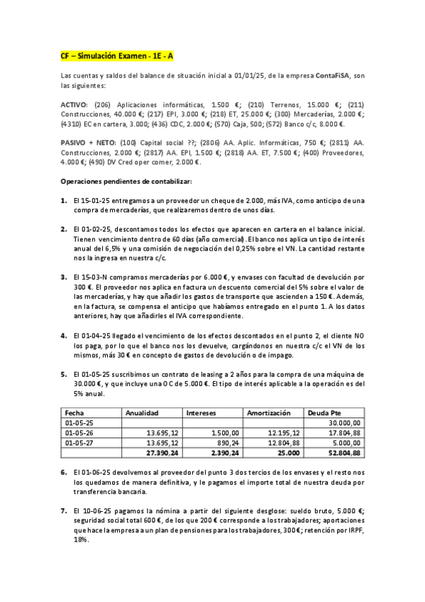 Contabilidad 2º Grado Superior Administración y finanzas CF – Simulación Examen - 1E - A