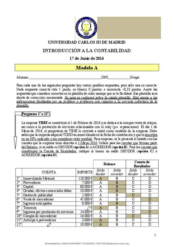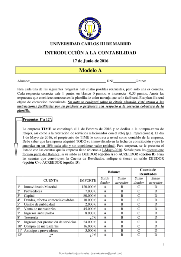 He publicado nuevos examenes de 1º Contabilidad: SOLUCIÓN EXAMEN CONTA TIME.pdf