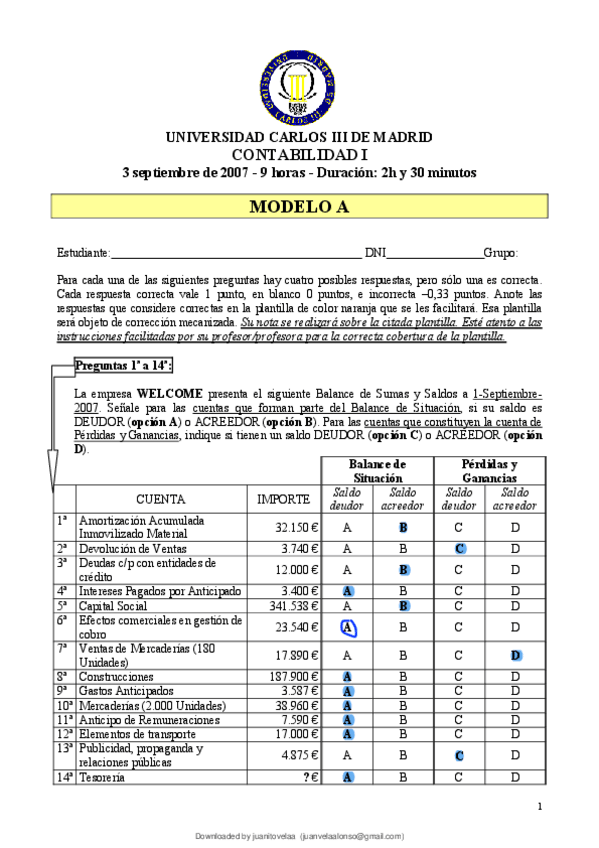 He publicado nuevos examenes de 1º Contabilidad: RESUELTO EXAMEN CONTA WELCOME.pdf