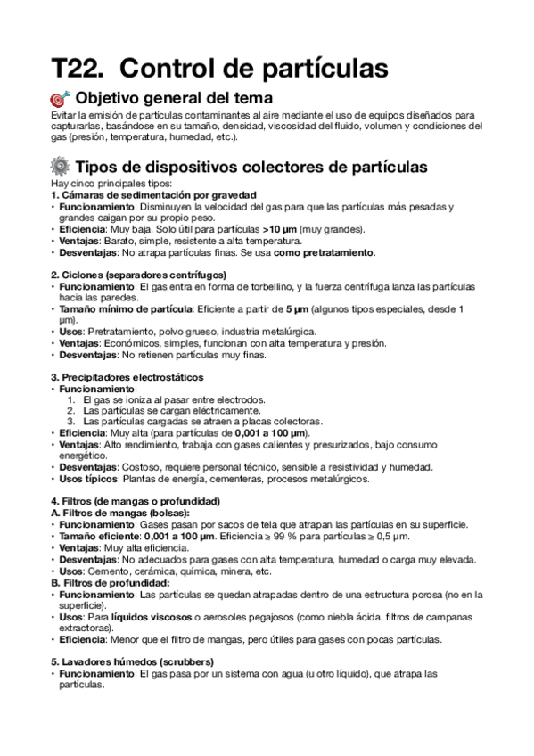 He publicado nuevos apuntes de 2º Contaminación atmosférica y su control: T22.-Control-de-particulas.pdf