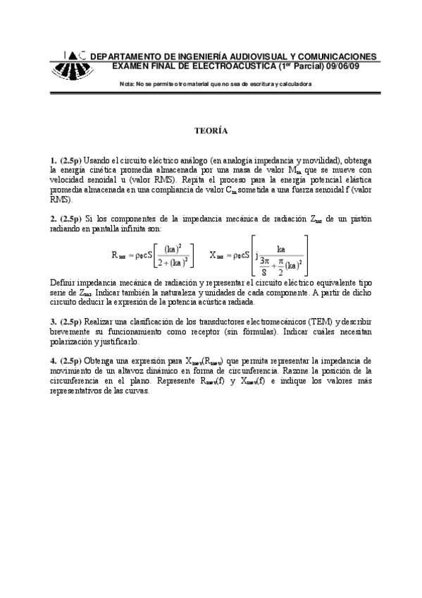 He publicado nuevos ejercicios de 4º Control de Ruido y Vibraciones: Ejercicio-Tema-6.pdf