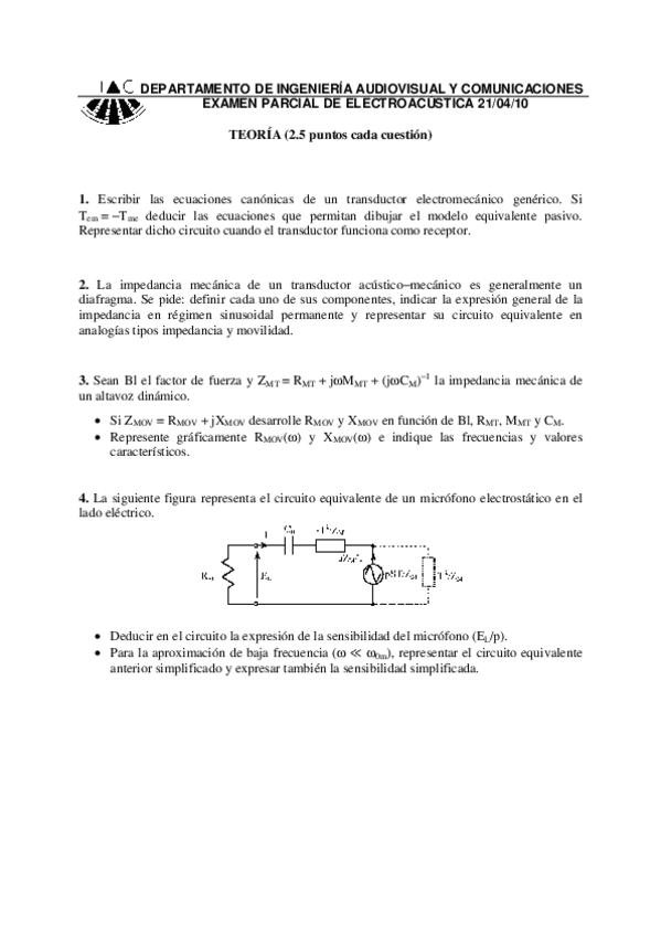 He publicado nuevos examenes de 4º Control de Ruido y Vibraciones: examenes resueltos