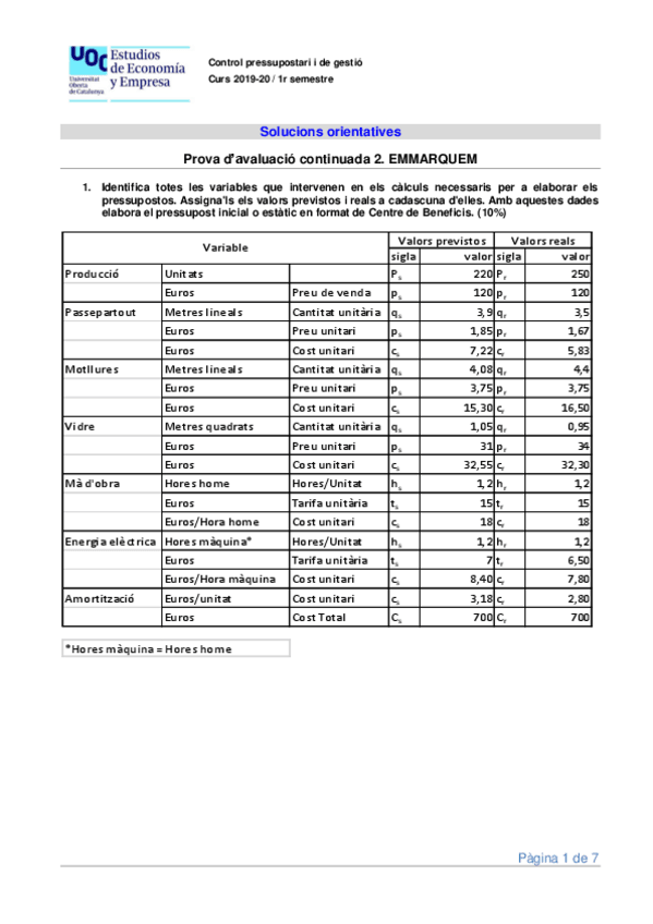 EJERCICIO PRÁCTICO RETO 1 - VÍDEO 2 - Desviaciones en MP (CONTROL PRESUPUESTARIO Y DE GESTIÓN - UOC)