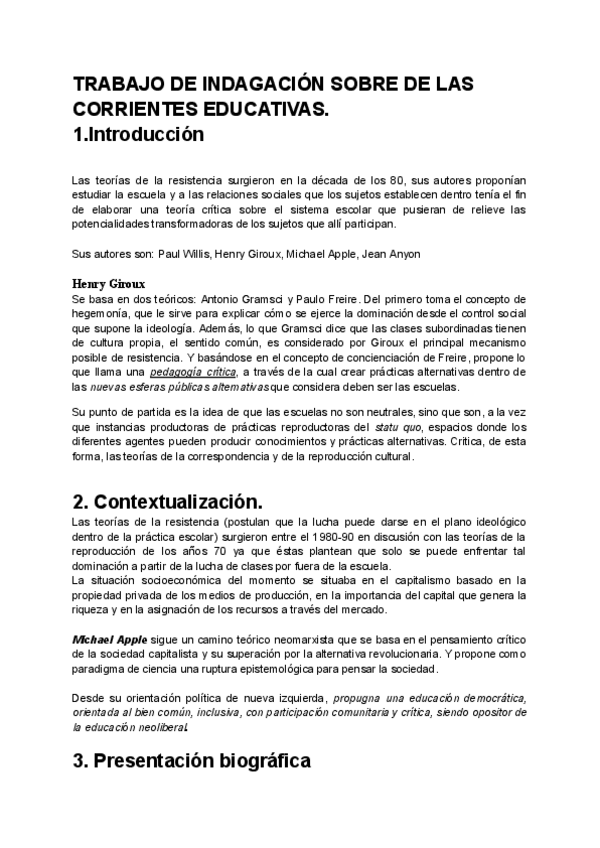 He publicado nuevos trabajos de 1º Corrientes Contemporáneas de la Educación. Implicaciones en la Etapa Infantil: TEORIA-DE-LAS-RESISTENCIAS.pdf