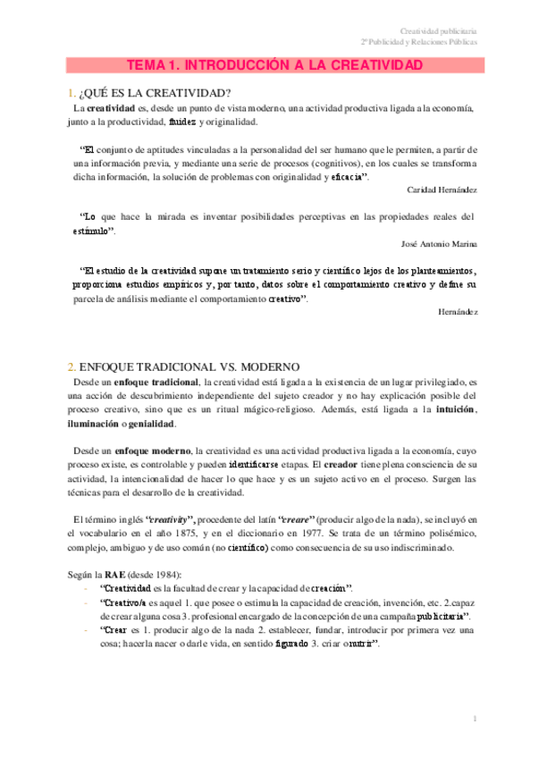 Tema 1 de Creatividad Publicitaria. El concepto de creatividad.