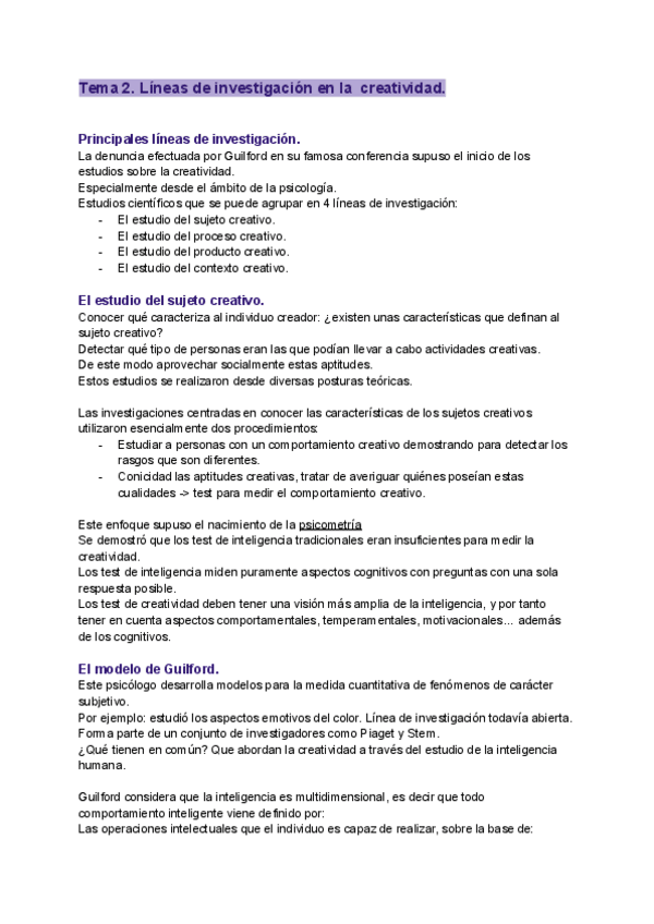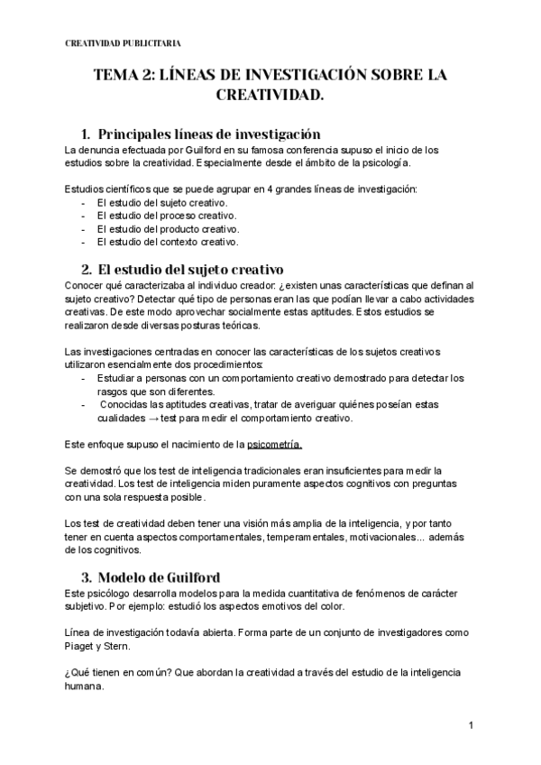 Creatvidad Publicitaria Tema 2. Líneas de investigación sobre la creatividad.