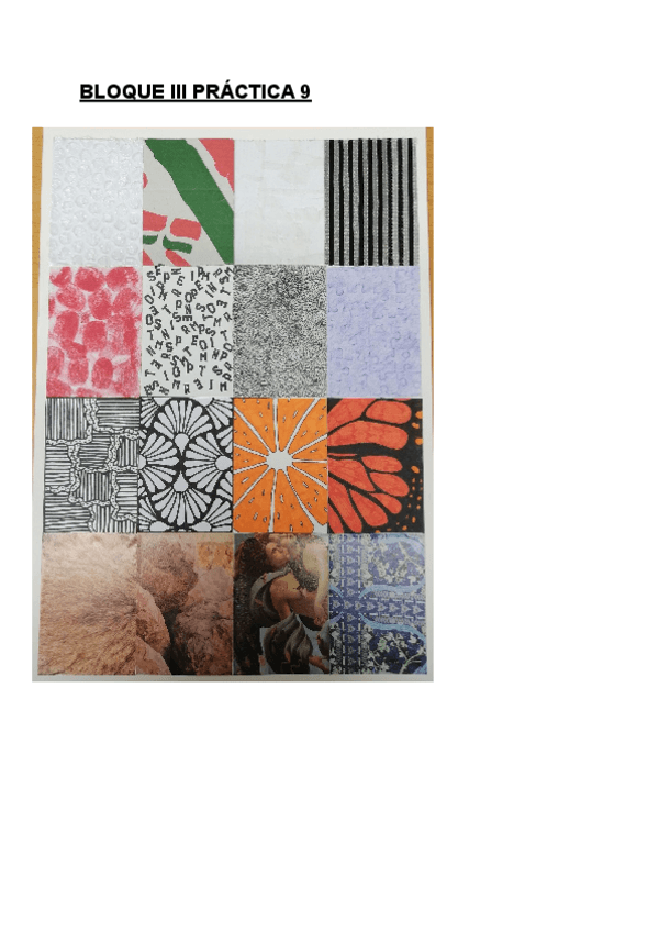He publicado nuevos practicas de 3º Creatividad y Didáctica de las Artes Visuales: Texturas-BLOQUE-III-PRACTICA-9.pdf