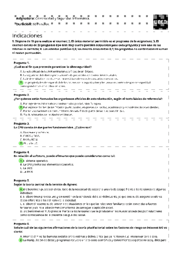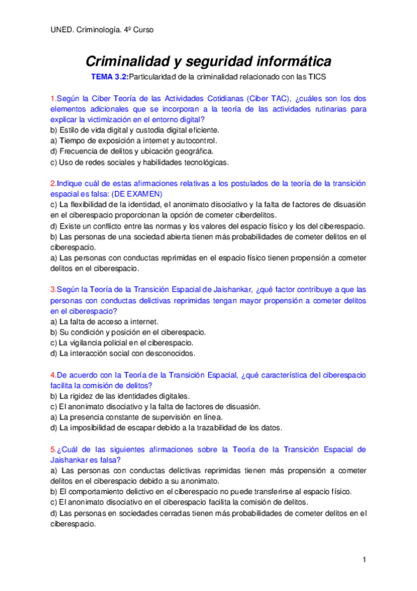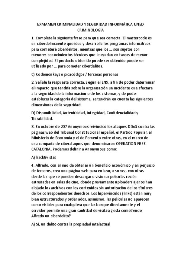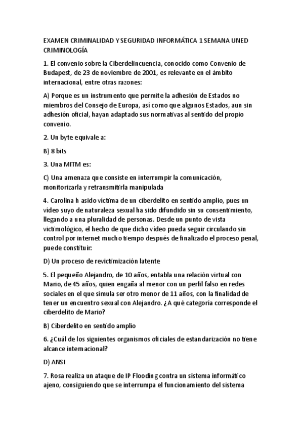 Examen criminalídad y seguridad informática segunda semana 2025 UNED Criminología