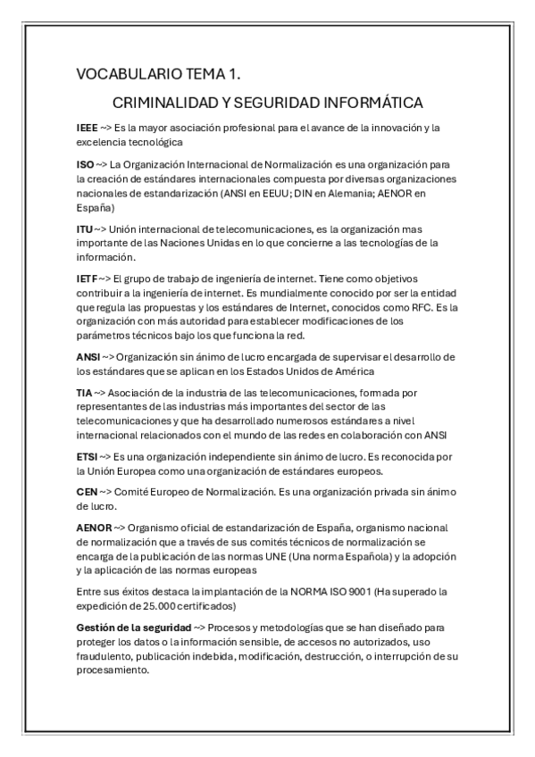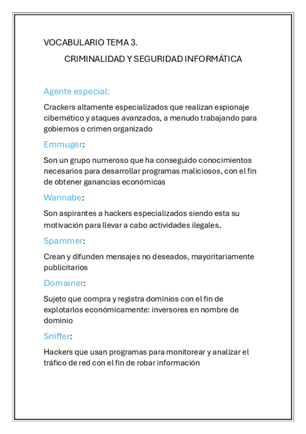VOCABULARIO TEMA 1 CRIMINALIDAD Y SEGURIDAD INFORMATICA