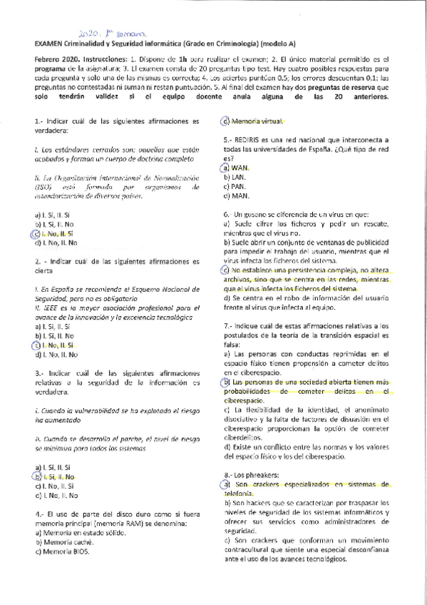 EXAMENES RESUELTOS AÑO 2019-2020 CRIMINALIDAD Y SEGURIDAD INFORMÁTICA