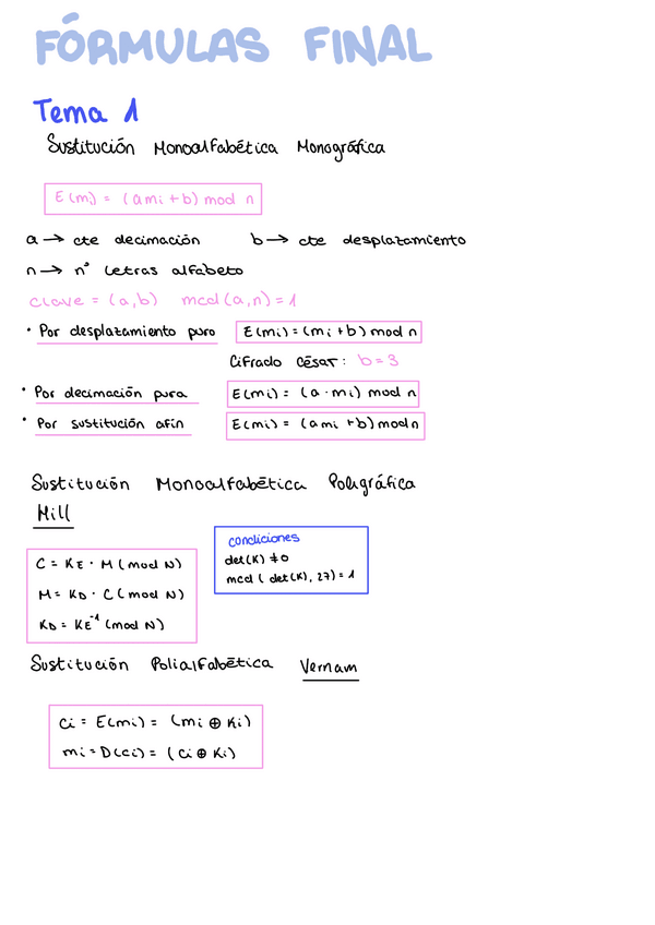He publicado nuevos apuntes de 3º Criptografía y Seguridad Informática: Formulas-final.pdf