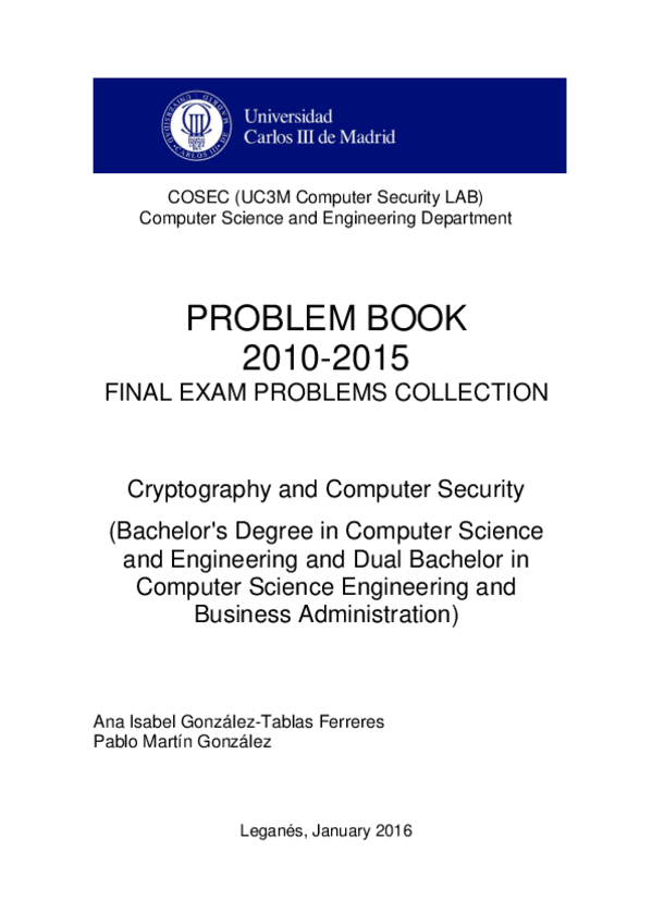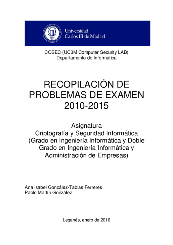 He publicado nuevos apuntes de 3º Criptografía y Seguridad Informática: Problemas resueltos