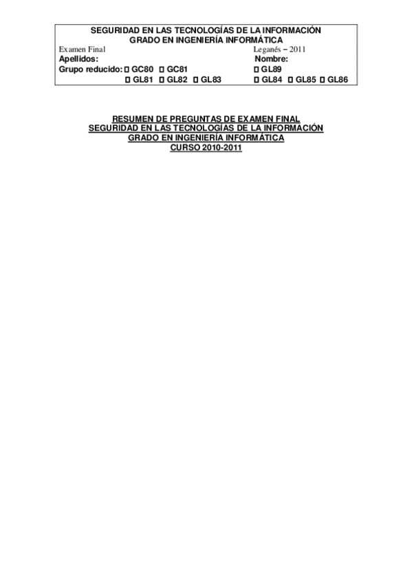 He publicado nuevos apuntes de 3º Criptografía y Seguridad Informática: Ejercicios-Examen.pdf