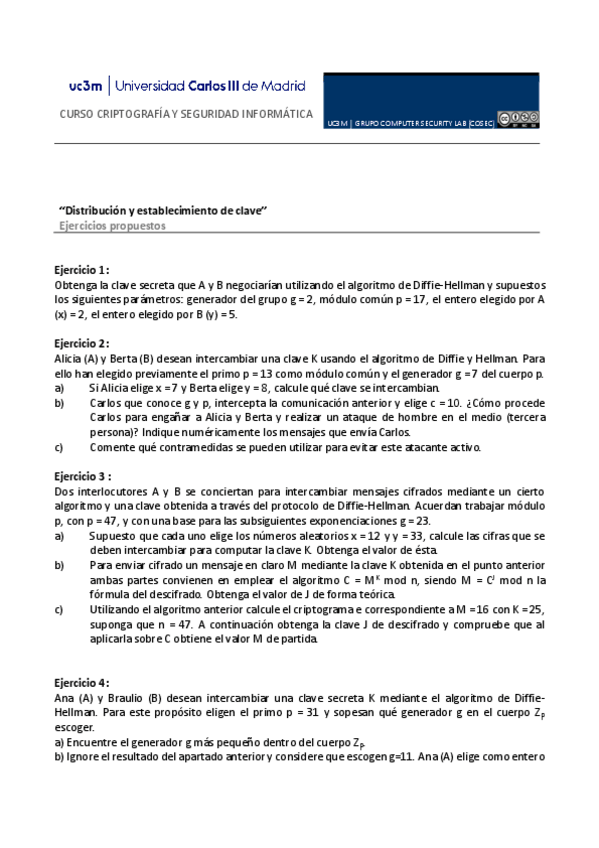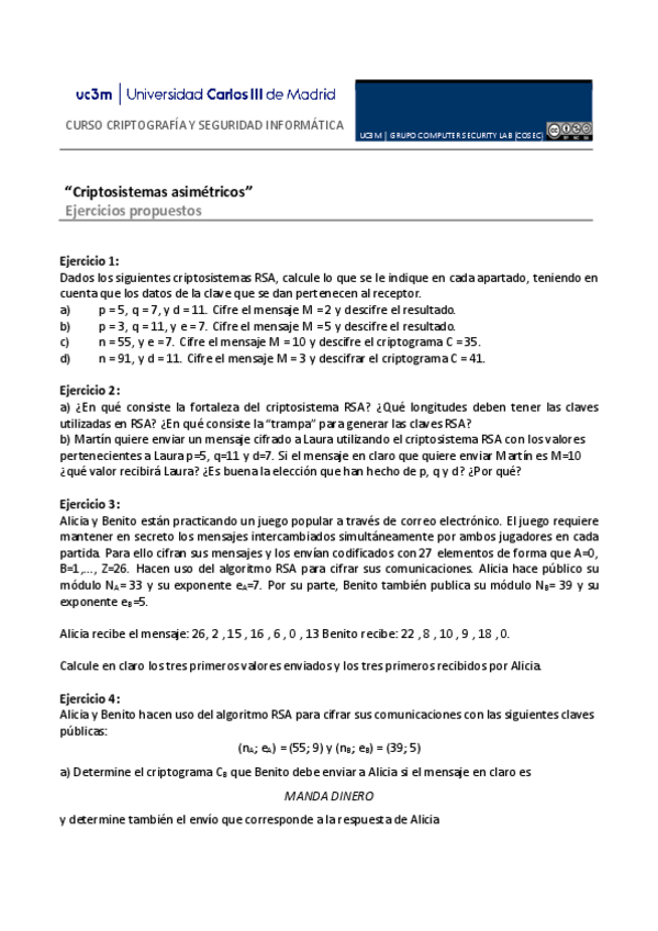 He publicado nuevos ejercicios de 3º Criptografía y Seguridad Informática: ejscosec.pdf
