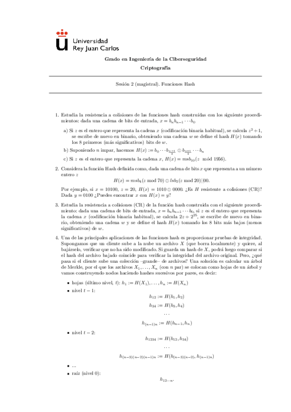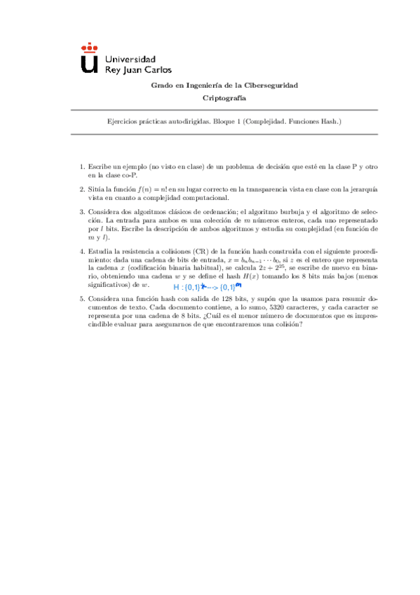 He publicado nuevos ejercicios de 1º Criptografía: Hoja 2 Ejercicios - Hashes y Aleatoriedad.pdf