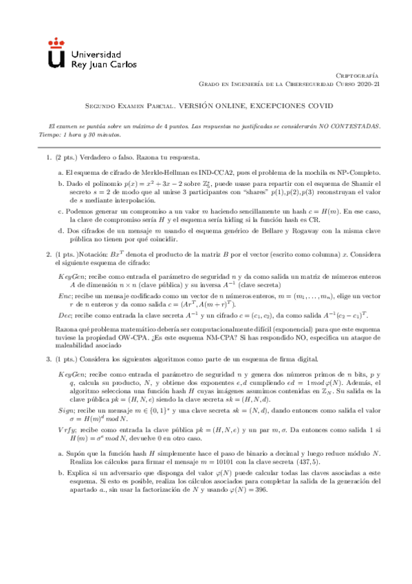 He publicado nuevos examenes de 1º Criptografía: Parcial-2-2021-Solucion.pdf