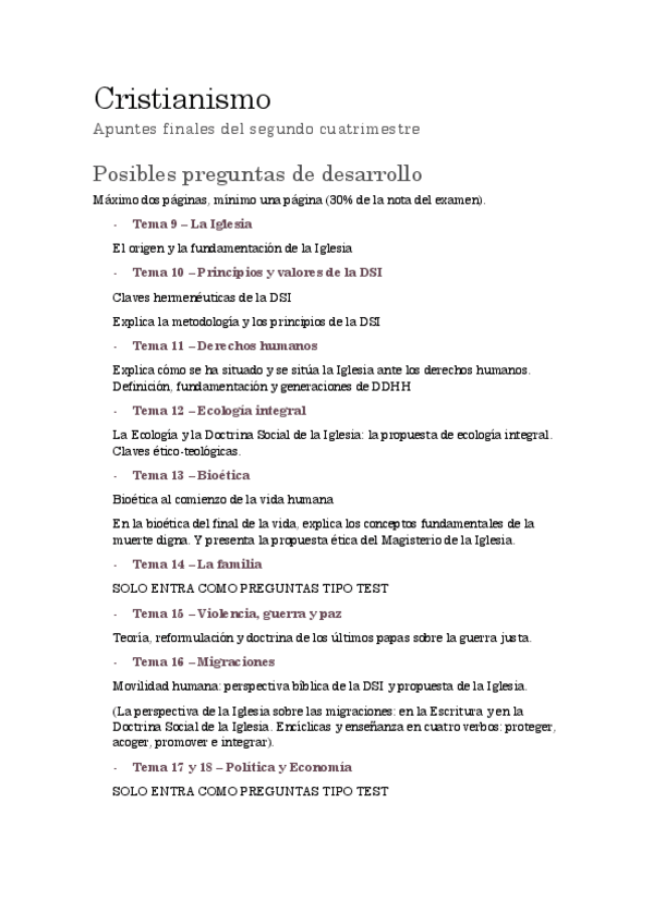 He publicado nuevos apuntes de 1º Cristianismo y Etica Social: Preguntas desarrollo