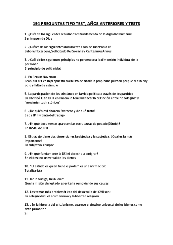 Todas las pregutnas tipo test que te pueden caer en el segundo cuatri de cristianismo