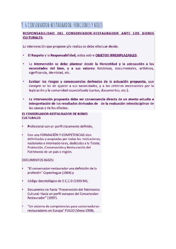 He publicado nuevos apuntes de 2º criterios de intervención y deontología de la profesión: Tema-4.-Conserv.-Resaurad..pdf