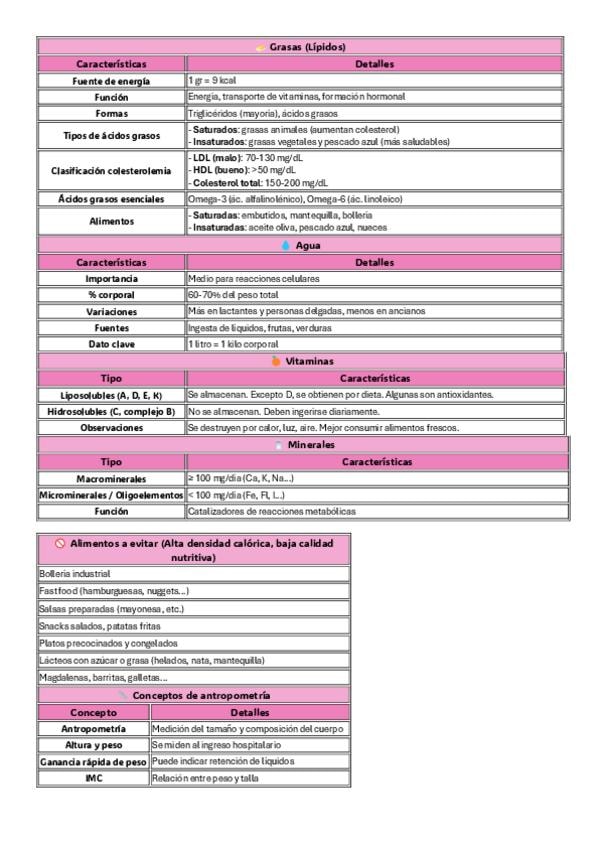 Tabla Clasificación NUTRIENTES Y SUS FUNCIONES (TEMA 9)