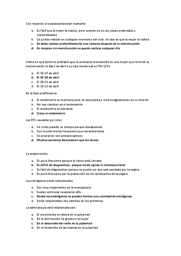 Preguntas exámenes mujer