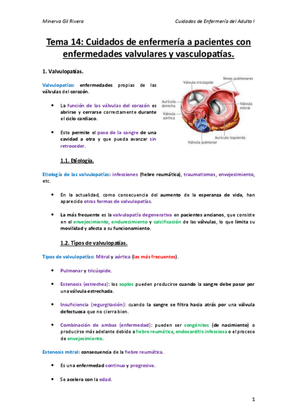 Tema 14: Cuidados de enfermería a pacientes con enfermedades valvulares y vasculopatías.